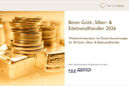 Edelmetalle gelten als vergleichsweise sichere Geldanlage – für viele genau das Richtige in unsicheren Zeiten, so scheint es, denn der Goldpreis steigt seit Jahren. Bei welchen Gold-, Silber- und Edelmetallhändlern Kundinnen und Kunden besonders gute Erfahrungen gemacht haben, haben wir in Kooperation mit dem F.A.Z. Institut in der umfassenden Vergleichsstudie „Beste Gold-, Silber- & Edelmetallhändler 2026“ untersucht. Dafür wurden insgesamt 3.142 Kundenurteile zu 30 Anbietern eingeholt und ausgewertet.