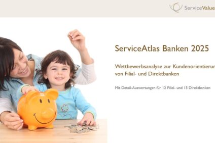 Grundsätzlich scheinen die Leistungen der großen Banken in Deutschland miteinander vergleichbar zu sein. Dennoch gibt es Unterschiede, die nicht nur in der Bankform – wie beispielsweise Filialbank oder Direktbank – begründet liegen, sondern vor allem auch in dem Grad der Kundenorientierung. Welche Banken dahingehend besonders punkten, zeigen wir mit unserer aktuellen „ServiceAtlas Banken 2025“. Für die Untersuchung wurden zu zwölf Filial- und fünfzehn Direktbanken knapp 3.000 Kundenurteile eingeholt und ausgewertet.