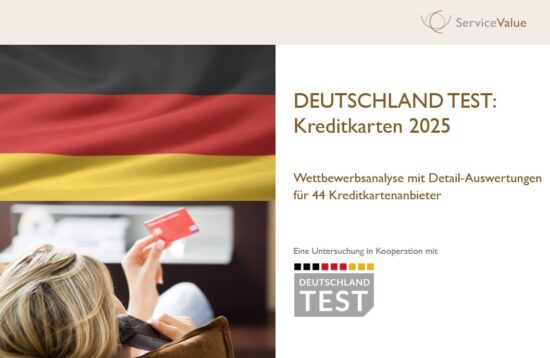 Die Benchmarkstudie „DEUTSCHLAND TEST: Kreditkarten 2025″ kann über die ServiceValue GmbH bezogen werden. Die Wettbewerbsanalyse enthält Gesamtergebnisse sowie detaillierte Einzelprofile zu 44 Kreditkartenanbietern.