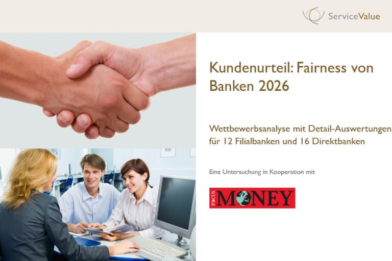 Die Benchmarkstudie „Kundenurteil: Fairness von privtaen Pflegeversicherern 2026“ kann über die ServiceValue GmbH bezogen werden. Die Wettbewerbsanalyse enthält Gesamtergebnisse sowie detaillierte Einzelprofile für 29 private Pflegeversicherer in Deutschland.