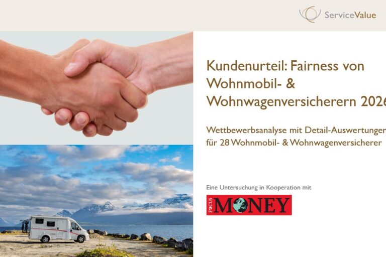 Die Benchmarkstudie „Kundenurteil: Fairness von Rechtsschutzversicherern 2023“ kann über die ServiceValue GmbH bezogen werden. Die Wettbewerbsanalyse enthält Gesamtergebnisse sowie detaillierte Einzelprofile für 27 Rechtsschutzversicherer in Deutschland.