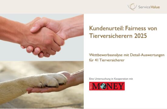 Die Benchmarkstudie „Kundenurteil: Fairness von Tierversicherern 2025“ kann über die ServiceValue GmbH bezogen werden. Die Wettbewerbsanalyse enthält Gesamtergebnisse sowie detaillierte Einzelprofile für 41 Tierversicherer in Deutschland.