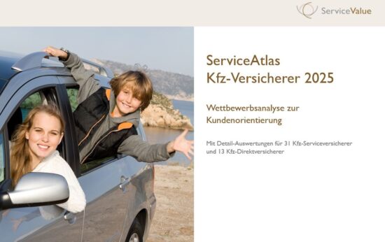 Der umfangreiche „ServiceAtlas Kfz-Versicherer 2025“ stellt auf über 500 Seiten detaillierte Wettbewerbsanalysen und Einzelprofile für 31 Kfz-Serviceversicherer und 13 Kfz-Direktversicherer dar und kann über die ServiceValue GmbH bezogen werden.